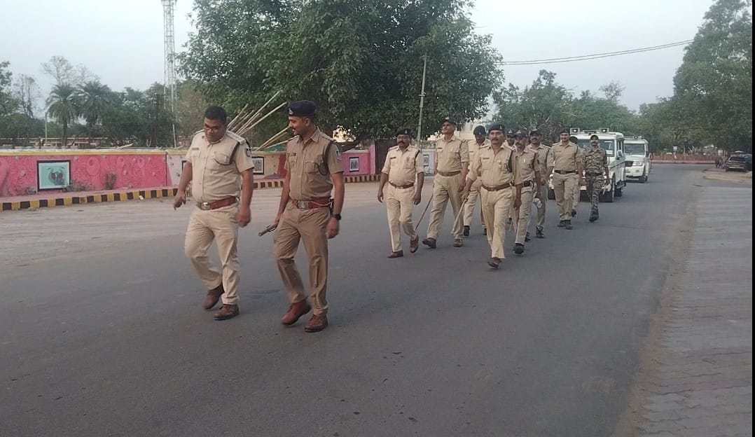 पुलिस अधीक्षक अमित सांघी के निर्देश परआज खजुराहो में शांति व्यवस्था बनाए रखने और अपराधों को रोकने के लिए फ्लैग मार्च निकाला गया जिसमें एसडीओपी खजुराहो के नेतृत्व में यह फ्लैग मार्च बस स्टैंड खजुराहो पहिल वाटिका , गोल मार्केट ,पुरानी बस्ती,गांधी चौराहा ,जैन मंदिर ,होते हुए खजुराहो थाने में समाप्त किया गया इसी दौरान एसडीओपी मनमोहन सिंह , थाना प्रभारी संदीप खरे ने बाजार में दुकान दारो से व्यापारियों से मुलाकात की और उनकी समस्याओं को भी जाना इसी दौरान फ्लैग मार्च में खजुराहो थाना प्रभारी सहित पुलिस बल रहा मौजूद।