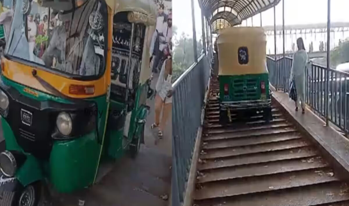 वीडियो में देखा जा सकता है कि ट्रैफिक जाम लगा हुआ है। इतने में ऑटो वाला फुटओवर ब्रिज पर ऑटो को चढ़ाता है और फिर स्पीड देकर सीढ़ियां चढ़ रहा है। पीछे से एक व्यक्ति धक्का भी लगा रहा है। घटना आज यानी 3 सितंबर की बताई जा रही है।