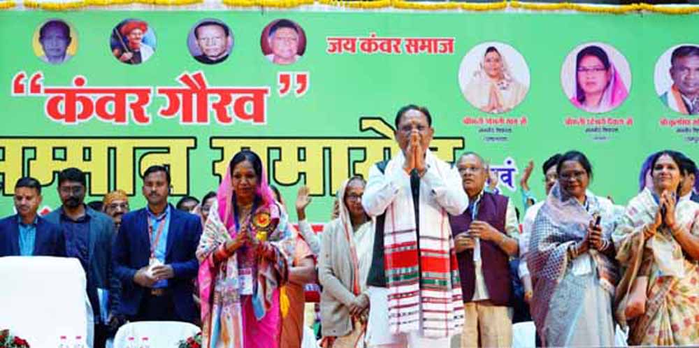 कंवर समाज द्वारा आयोजित कंवर महोत्सव सम्मान समारोह में शामिल होने राजधानी रायपुर के बलबीर सिंह जुनेजा इंडोर स्टेडियम पहुंचे मुख्यमंत्री विष्णुदेव साय ने कहा कि आज मोर बर बड़े खुशी के दिन हे कि आज कंवर समाज यहां कंवर महोत्सव में मोला बुलाइन और कंवर रत्न से सम्मानित करिन, मैं बहुत बहुत आभारी हों और धन्यवाद ज्ञापित करते हों, आज ये जो सम्मान मिला है भाजपा की तरफ से या देश के प्रधानमंत्री की तरफ से कि एक छोटे से कार्यकर्ता को मुख्यमंत्री का दायित्व सौंपा है मैं समाज की तरफ से धन्यवाद देता हूं। ये विष्णुदेव का सम्मान नहीं है बल्कि पूरे कंवर समाज का है। इसके साथ ही हमारी जिम्मेदारी भी बड़ी है। आज एक बहुत बडा विश्वास देश के प्रधानमंत्री ने किया है। मैं जीवन भर समाज का आभारी रहूंगा। मुख्यमंत्री ने इस दौरान टाटीबंध मे कंवर समाज के भवन में अन्य निर्माण के लिए 50 लाख रूपए की घोषणा की।