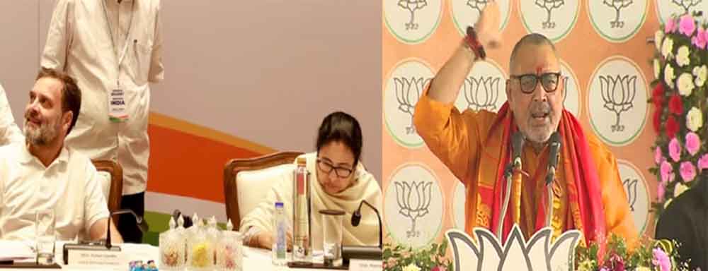 वहीं कांग्रेस के 295 सीट से अधिक वाले बयान को गिरिराज सिंह ने थेथरोलॉजी करार देते हुए कहा है कि आज सभी सर्वे एजेंसियां 400 के आसपास एनडीए की बढ़त को बता रही है तो वहीं कांग्रेस एवं इंडी गठबंधन के लोग थेथरलॉजी से बाज नहीं आ रहे। गिरिराज सिंह ने एक बार फिर जहां ममता बनर्जी को आरे हाथों लेते हुए संदेशखाली की घटना पर आपत्ति जताते हुए कहा है कि बंगाल की जनता का अब ममता बनर्जी से विश्वास उठ गया है और यही वजह है कि आज बंगाल में भी भाजपा बहुमत से आगे जा रही है। तो उन्होंने कहा कि आज सभी एजेंसियों ने एनडीए गठबंधन को 400 के आसपास की बढ़त बताई है और यह सिर्फ मोदी की गारंटी का ही परिणाम है।