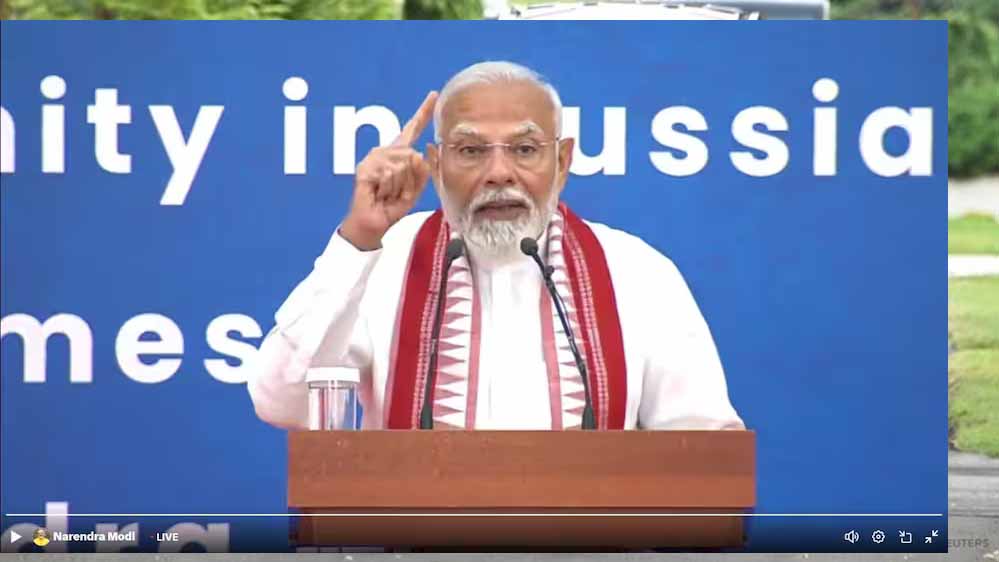 रूस के साथ रिश्तों का जिक्र करते हुए पीएम मोदी ने कहा, 'रूस शब्द सुनते ही, हर भारतीय के मन में पहला शब्द आता है- भारत के सुख-दुख का साथी, भारत का भरोसेमंद दोस्त। रूस में सर्दी के मौसम में तापमान कितना ही माइनस में नीचे क्यों न चला जाए, भारत-रूस की दोस्ती हमेशा प्लस में रही है, गर्मजोशी भरी रही है। ये रिश्ता म्यूचुअल ट्रस्ट और म्यूचुअल रेस्पेक्ट पर बना है।'