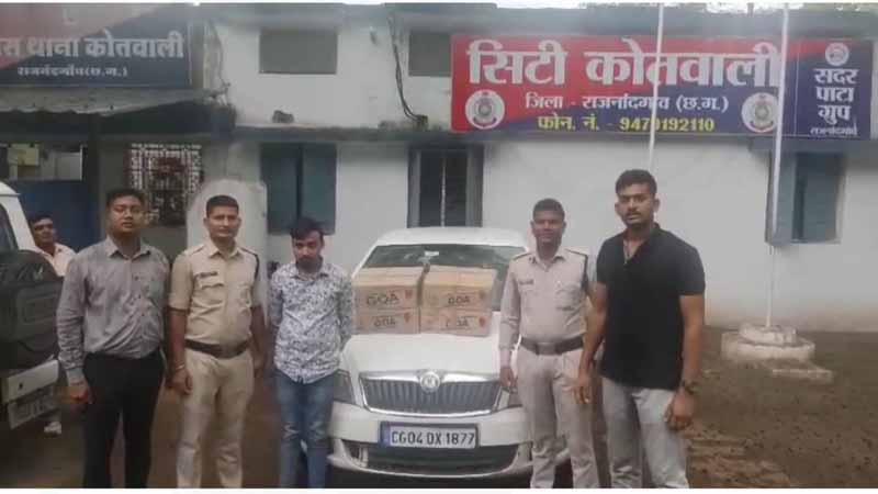 दरअसल पुलिस को सूचना मिली थी कि मध्यप्रदेश के बैतूल से राजनांदगांव के रास्ते जगदलपुर स्कोडा कार में शराब तस्करी की जा रही है। सूचना पर पुलिस ने कन्हारपुरी बाईपास के समीप घेराबंदी कर वाहन को पकड़ा, जिसमें पुलिस को 22 पेटी अंग्रेजी शराब बरामद हुई।