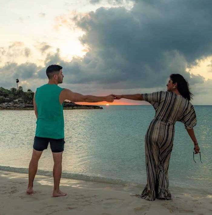 पहली तस्वीर में प्रियंका यलो स्विमसूट में पूल में नजर आ रही हैं। दूसरी तस्वीर में वह समंदर किनारे निक जोनस के साथ दिख रही हैं और दोनों एक-दूसरे को किस करते दिख रहे हैं। तीसरी फोटो में ग्रीन कलर के आउटफिट में धूप में सोफे पर बैठकर पोज देती दिख रही हैं और चौथे में ढलती शाम का खूबसूरत नजारा है और दोनों हाथों में हाथ डाले एक-दूसरे से नजरें मिलाते दिख रहे हैं। इन तस्वीरों पर लोगों ने भी खूब कॉमेंट किए हैं। एक ने कहा- आप सच में लकी हैं जीजू। वहीं कुछ ने कहा- प्रियंका भी लकी हैं।