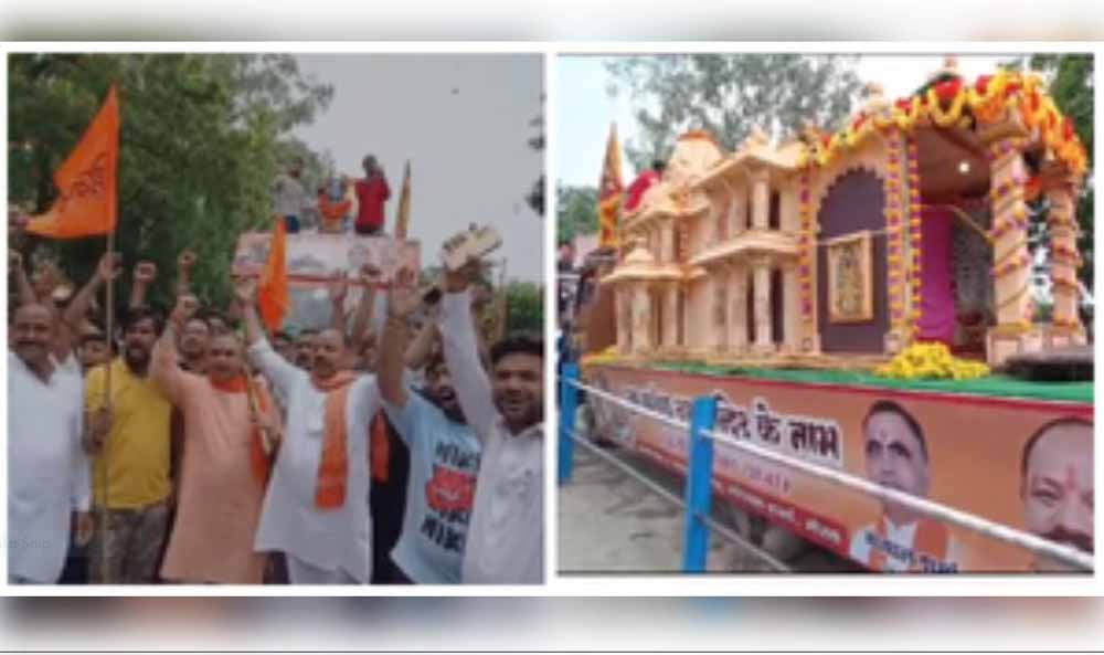 मेरठ में आस्था का एक अनोखा दृश्य सामने आया, जहां लोग कांवड़ यात्रा में भगवान राम के अयोध्या में बने राम मंदिर के मॉडल की झांकी लेकर हरिद्वार गंगा जल लेने जाते दिखे। झांकी में बने राम मंदिर में भगवान राम को बाकायदा विराजमान किया गया है। झांकी की सबसे बड़ी खासियत ये है कि ये 35 लाख रुपये में बनी है। इस झांकी में शामिल करीब 250 लोगों का एक समूह पूरे साज-सज्जा के साथ हरिद्वार जा रहा है। कावड़ में झांकी का नाम राम मंदिर के नाम पर रखा गया है।