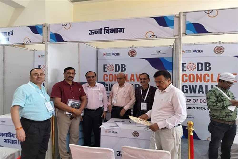 मध्यप्रदेश में निवेशकों, उद्योगपतियों एवं व्यवसायियों के अनुकूल वातावरण बनाने के साथ ही प्रदेश में चल रही योजनाओं के संबंध में मार्गदर्शन और सुविधाओं की जानकारी प्रदान करने के उद्देश्य से औद्योगिक नीति एवं निवेश प्रोत्साहन विभाग द्वारा म.प्र. औद्यौगिक विकास निगम एवं भारतीय उद्योग परिसंघ (सीआईआई) के सहयोग से मंगलवार को ग्वालियर में "इज ऑफ डूइंग बिजनेस कान्क्लेव एंड क्लिनिक 2024" (EODB) का आयोजन किया गया। कान्क्लेव में ऊर्जा विभाग द्वारा आयोजन स्थल पर स्टॉल लगाई गई। इसके माध्यम से कॉन्क्लेव में शामिल हुए उद्योगपतियों एवं बिजनेस प्रतिनिधियों को राज्य शासन एवं विद्युत कंपनियों द्वारा प्रदान की जा रही सुविधाओं एवं योजनाओं संबंधी प्रचार-प्रसार सामग्री वितरित की गईं। साथ ही उन्हें योजनाओं की जानकारी भी प्रदान की गई। बिजनेस कान्क्लेव में लगभग 35 से अधिक उच्चदाब उपभोक्ताओं की समस्याओं का मौके पर ही समाधान भी किया गया।