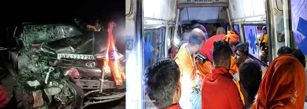 बांका में ट्रक और कांवरिया सवार कार के बीच टक्कर हो गई, जिसमें एक की मौत हो गई, जबकि कार में सवार सात कांवरिया गंभीर रूप से घायल हो गये। घटना बाराहाट थाना क्षेत्र के ढाकामोड़ स्थित रेलवे ओवरब्रीज के समीप की है। घटना के संबंध में कांवरियों का कहना है कि सभी कांवरिया मधेपुरा और आसपास के क्षेत्र के हैं जो बासुकीनाथ से पूजा कर अपने घर लौट रहे थे। इसी बीच ढाका मोड़ रेलवे ओवर ब्रिज के पास ट्रक से सीधी टक्कर हो गयी।