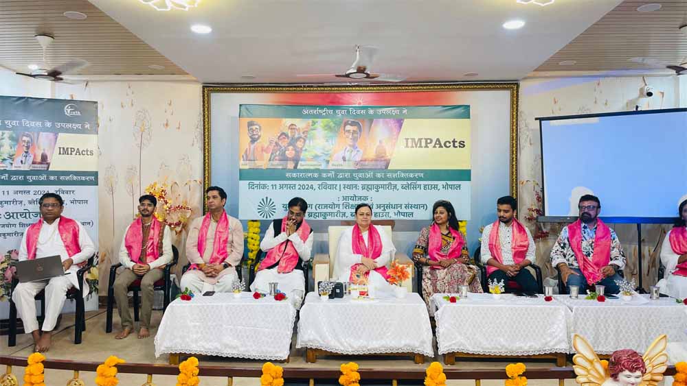 अंतर्राष्ट्रीय युवा दिवस 12 अगस्त के परिप्रेक्ष्य में सकारात्मक कार्य के द्वारा युवाओं को सशक्त बनाने हेतु ‘इम्पैक्ट’ कार्यक्रम का आज ब्रह्माकुमारीज ब्लेसिंग हाउस, भोपाल में आयोजन किया गया | कार्यक्रम मे सकारात्मक कार्य के द्वारा युवाओं को सशक्त बनाने पर उपस्थित विद्वानों द्वारा मंथन किया गया |