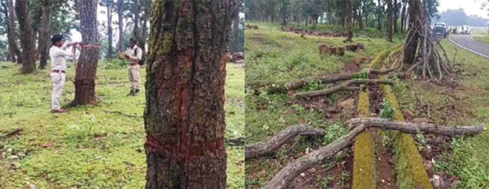 जशपुर जिले के पठारी क्षेत्र पंडरापाठ में कुछ ग्रामीणों ने जंगल की 3.5 एकड़ जमीन को खाली करने के लिए सैकड़ों पेड़ों की कटाई व गार्डलिंग कर दी है. रात के अंधेरे में बेशकीमती पेड़ों को गार्डलिंग कर छोड़ दिया गया, जिससे अब यह पेड़ सूखने के कगार पर आ गए हैं. ग्रामीणों का आरोप है कि गांव की कुछ दबंग प्रवृति के लोग करीब 500 पेड़ो को कटाई कर दी है. वहीं गार्डलिंग की गई पेड़ों को आसानी से काट-काट कर उक्त भूमि पर वन अधिकार पट्टा के लिए आवेदन करने का योजना बनाई है.