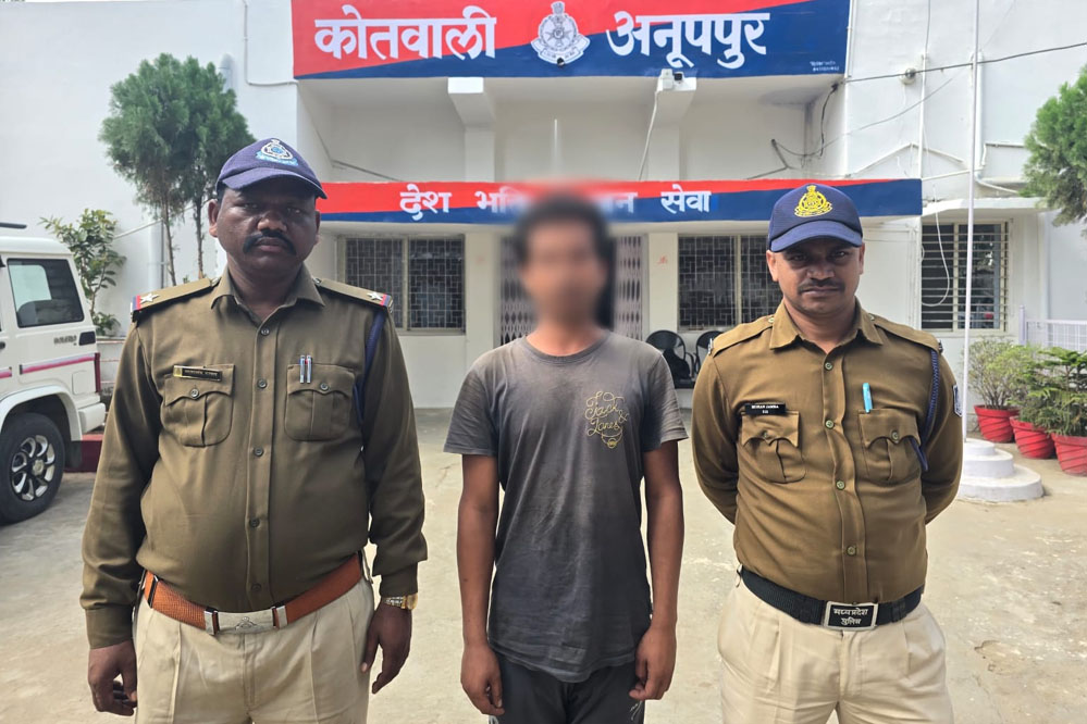 पुलिस अधीक्षक अनूपपुर मोती उर रहमान द्वारा माननीय न्यायालय में विचाराधीन विभिन्न आपराधिक प्रकरणों में फरार चल रहे अपराधियों जिनके विरूद्ध माननीय न्यायालय द्वारा गिरफ्तारी वारण्ट जारी किये गये है उनकी गिरफ्तारी किये जाने हेतु निर्देश दिया गया है जिसके अनुपालन में शुक्रवार की रात्रि गश्त के दौरान टी.आई. कोतवाली अर्विन्द जैन के नेतृत्व में सहायक उपनिरीक्षक महिपाल नामदेव, आरक्षक गुपाल यादव, राजेश बड़ोले के द्वारा पांच वर्षों से धोखाधड़ी एवं आपराधिक न्यासभंग के मामले में फरार चल रहे स्थाई गिरफ्तारी वारण्टी सौरभ सिहं चौहान पिता प्रमोद सिहं चौहान उम्र 23 साल निवासी ग्राम बरबसपुर अनूपपुर को गिरफ्तार करने में सफलता प्राप्त की गई।