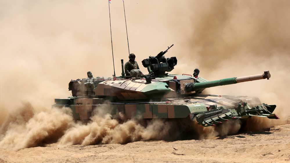पहले 10 भीष्म टैंक अगस्त 2009 में सेना में शामिल हुए. भारत ने सैकड़ों और भीष्म टैंक को शामिल करने का प्लान किया हुआ है. अभी भारत के पास 2000 के करीब T-90 सीरीज़ के टैंक है. अर्जुन टैंक अर्जुन टैंक को कतई देशी टैंक कह सकते हैं. इसे डिफेंस रिसर्च एंड डेवेलपमेंट आर्गेनाइजेशन (DRDO) और कॉम्बैट व्हीकल्स रिसर्च एंड डेवलपमेंट एस्टेब्लिशमेंट (CVRDE) द्वारा विकसित किया गया है. इसकी अधिकतम स्पीड 70 किलोमीटर प्रति घंटे की है. उबड़खाबड़ रास्ते पर इसकी अधिकतम स्पीड 40 किलोमाटर प्रति घंटे की है. इस टैंक का वजन 58.5 टन है. इसमें कई अत्याधुनिक फीचर्स दिए गए हैं. जैसे कि थर्मल इमेजिंग के साथ नाइट विजन, डिजिटल बैलिस्टिक कंप्यूटर, एंटी एयरक्राफ्ट मशीन गन, हाई परफॉरमेंस इंजन. यह टैंक प्रति मिनट 6-8 राउंड फायर कर सकता है. भारत के पास अर्जुन टैंक के सभी मॉडल को मिलाकर करीब 370 टैंक हैं.
