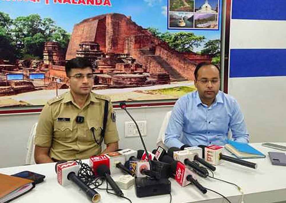 नालंदा में जिलाधिकारी शशांक शुभंकर और पुलिस अधीक्षक भारत सोनी ने मिलकर एक प्रेस कॉन्फ्रेंस की। इसमें उन्होंने बताया कि जिले में कानून-व्यवस्था को ठीक बनाए रखने के लिए कुछ खास कदम उठाए जा रहे हैं। हालात को देखते हुए प्रशासन ने सख्त फैसले लेने का फैसला किया है।