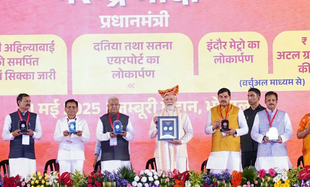 प्रधानमंत्री मोदी ने छत्तीसगढ़ की जनजातीय कलाकार डॉ. जयमती कश्यप को देवी अहिल्या बाई राष्ट्रीय सम्मान प्रदान किया। प्रधानमंत्री मोदी ने लोकमाता देवी अहिल्याबाई होल्कर को समर्पित डाक टिकट और 300 रूपये का सिक्का जारी किया। प्रधानमंत्री मोदी ने दतिया और सतना एयरपोर्ट का लोकार्पण तथा इंदौर मेट्रो का भी शुभारंभ किया। प्रधानमंत्री मोदी ने प्रदेश में 1271 नए अटल ग्राम सेवा सदन (पंचायत भवन) निर्माण के लिए प्रथम किस्त के अंतर्गत 483 करोड़ रुपए का वर्चुअल अंतरण भी किया।