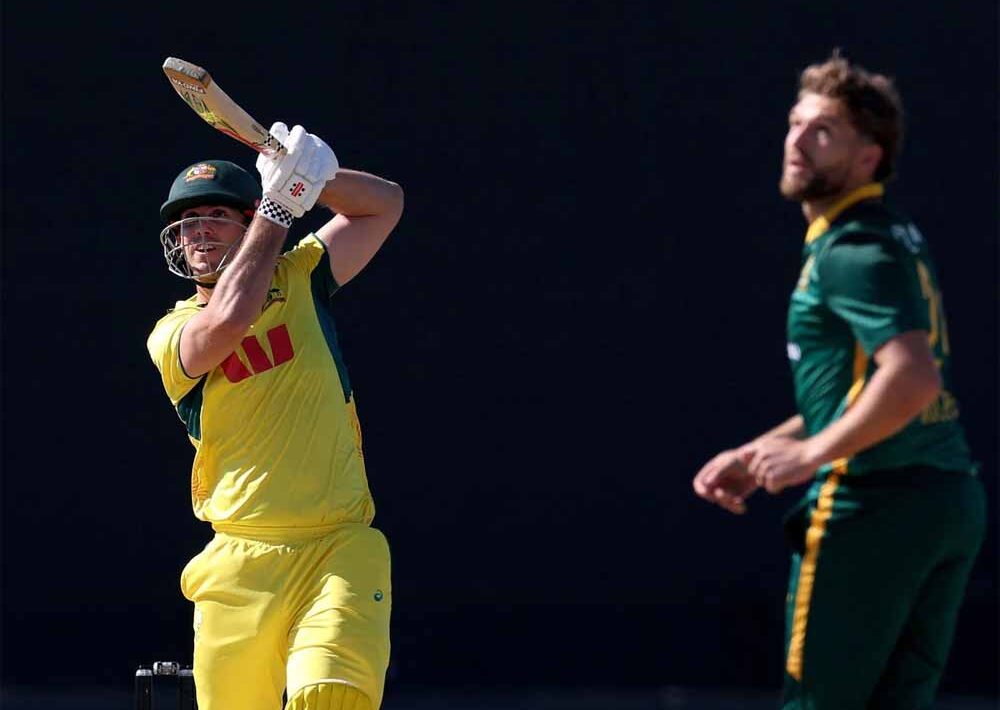 मेजबान ऑस्ट्रेलिया ने मैके के स्टेडियम में टॉस जीतकर बैटिंग चुनी। हेड और मार्श ने दमदार शुरुआत दिलाई। दोनों ने पहले विकेट के लिए 250 रनों की साझेदारी की। ऑस्ट्रेलिया को पहला झटका 35वें ओवर में हेड के रूप में लगा, जो स्पिनर केशव महाराज का शिकार बने। उन्होंने 103 गेंदों में 142 रन बनाने के बाद डेवाल्ड ब्रेविस को कैच थमाया। हेड के बल्ले से 17 चौके और पांच छक्के निकले। मार्श को सेनुरन मुथुसामी ने 37वें ओवर में रिकेल्टन के हाथों लपकवाया। उन्होंने 106 गेंदों में 100 रन जुटाए, जिसमें 6 चौके और 5 सिक्स शामिल हैं। मार्श ने इस दौरान तीन हजार वनडे रन कंप्लीट किए।