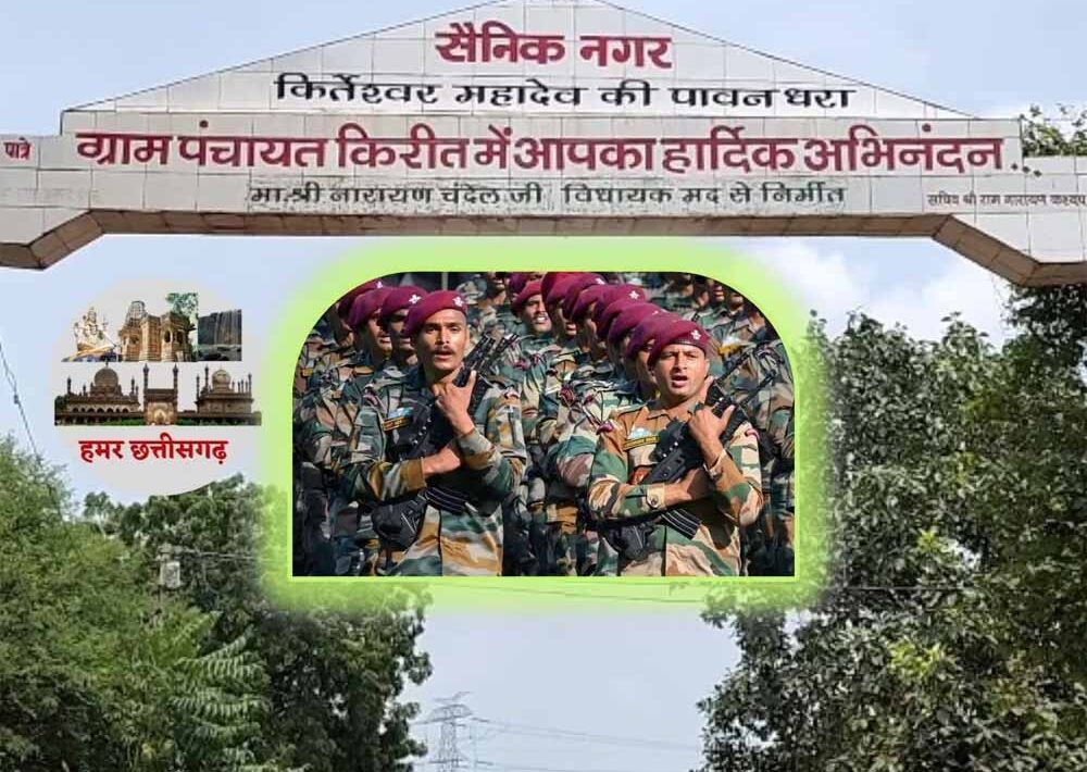 ये गांव है वीर जवानों का,अलबेलों का,मस्तानों का… इस गांव का यारों क्या कहना… जी हां!छत्तीसगढ़ में एक गांव है किरीत,जहां की माटी वीर सपूतों को जन्म देती है। यहां ऐसा कोई घर नहीं है जहां के युवा फौज में न हो। यहां के युवाओं में देशप्रेम की भावना कूटकूट कर भरी हुई है। इस गांव के 100 से अधिक युवा थल सेना में अलग-अलग पदों पर रहते हुए सीमा पर तैनात हैं। इसके अलावा पुलिस, आईटीबीपी, सीआरपीएफ, सीआईएसएफ जैसे विंगों में भी गांव के युवक सेवा दे रहे हैं। देश सेवा का जुनून और फौज में भर्ती होने का यह सिलसिला चार दशक पहले शुरू हुआ था, जो अब तक चल रहा है।