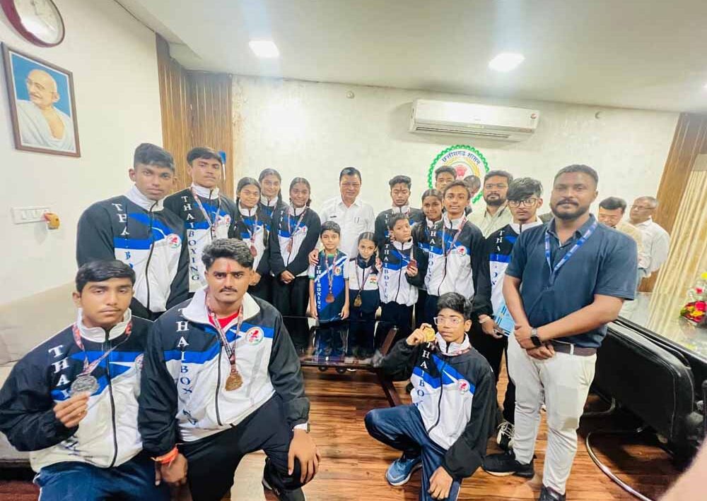 थाईबॉक्सिंग राष्ट्रीय स्पर्घा विजेता खिलाड़ियों को मंत्री लखन लाल देवांगन जी ने दिये आशीर्वाद