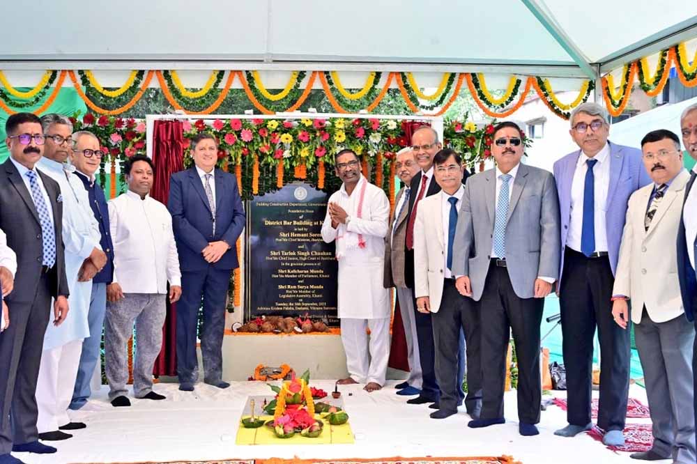झारखंड के मुख्यमंत्री हेमंत सोरेन ने बीते मंगलवार को बार काउंसिल के तीन भवनों की आधारशिला रखी। सोरेन ने झारखंड उच्च न्यायालय के मुख्य न्यायाधीश तरलोक सिंह चौहान की उपस्थिति में खूंटी में बार काउंसिल भवन की आधारशिला रखी।