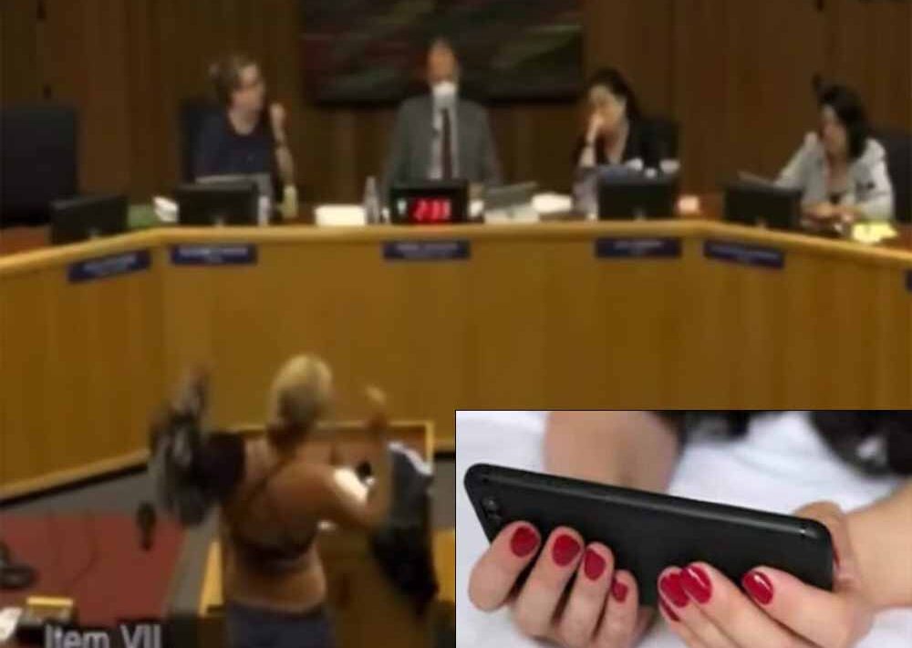 कपड़े उतारने हुए महिला कहने लगी, “मैं डेविस यूनिफाइड स्कूल डिस्ट्रिक्ट की एक अभिभावक हूं, और मैं आज यहां जूनियर हाई स्कूलों के लॉकर रूम के लिए आपकी नीतियों पर बात करने आई हूँ। एमर्सन, होम्स, हार्पर जूनियर हाई। अभी, हम अपने छात्रों को फिजिकल एजुकेशन की क्लासेस के लिए कपड़े उतारने के लिए कहते हैं। इसलिए मैं आपको बस यह बताने जा रही हूं कि जब मैं कपड़े उतारती हूं तो उन्हें कैसा लगता है।”