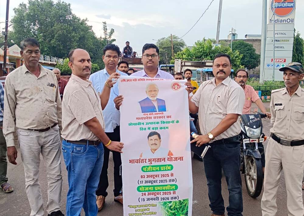 म.प्र. सरकार द्वारा किसानों को आर्थिक रूप से सशक्त एवं समृद्ध बनाने के लिए भावांतर योजना प्रारंभ की गई है। जिसका फायदा सोयाबीन का उत्पादन करने वाले कृषकों को मिलेगा। कलेक्टर पार्थ जैसवाल द्वारा जिले में अधिकारियों को योजना के प्रचार प्रसार करने के निर्देश दिए गए है। इसी क्रम में एसडीएम कौशल सिंह के नेतृत्व में लवकुशनगर में किसान जागरूकता रैली निकाली गई। जिसमें किसानों से भावांतरा योजना में पंजीयन कराने एवं योजना के लाभ की जानकारी दी गई। किसान भाई एमपी ऑनलाइन एवं सीएससी केन्द्रों से आसानी से पंजीयन करा सकते है।