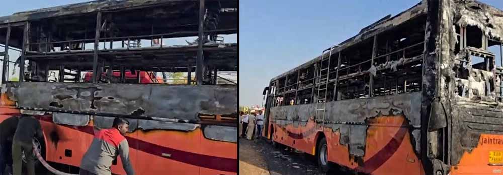 राजस्थान के जैसलमेर जिले में 14 अक्तूबर यानी मंगलवार दोपहर चलती एसी बस में अचानक भीषण आग लग गई थी। प्रत्यक्षदर्शियों के अनुसार, आग इतनी तेजी से फैली कि यात्रियों को बाहर निकलने का मौका ही नहीं मिला। बस का फाटक लॉक हो गया था, जिससे कई लोग अंदर फंस गए। कुछ यात्रियों ने खिड़कियां तोड़कर किसी तरह अपनी जान बचाई। बस में कुल 57 यात्री सवार थे। शुरुआती जांच में पता चला कि शॉर्ट सर्किट से बस के इंजन में आग लगी, जो देखते ही देखते पूरे वाहन में फैल गई। अधिकांश यात्री जोधपुर और जैसलमेर के ग्रामीण इलाकों से थे और कामकाज या परीक्षा से लौट रहे थे।