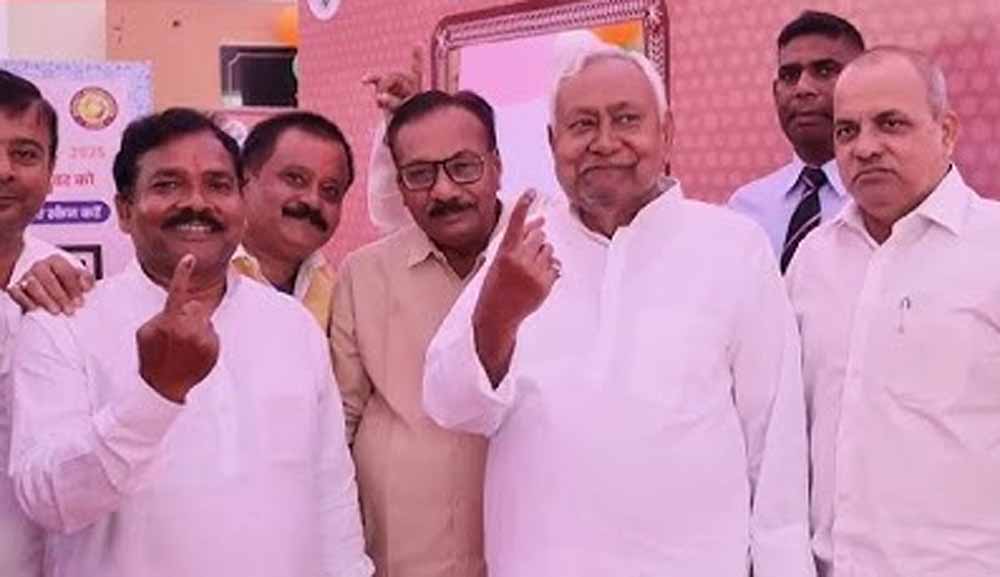 बिहार में विधानसभा चुनाव के पहले चरण के लिए गुरूवार सुबह कड़ी सुरक्षा व्यवस्था के बीच 121 सीट पर मतदान जारी है। इसी कड़ी में बिहार के मुख्यमंत्री नीतीश कुमार ने पटना के बख्तियारपुर में अपना वोट डाला।