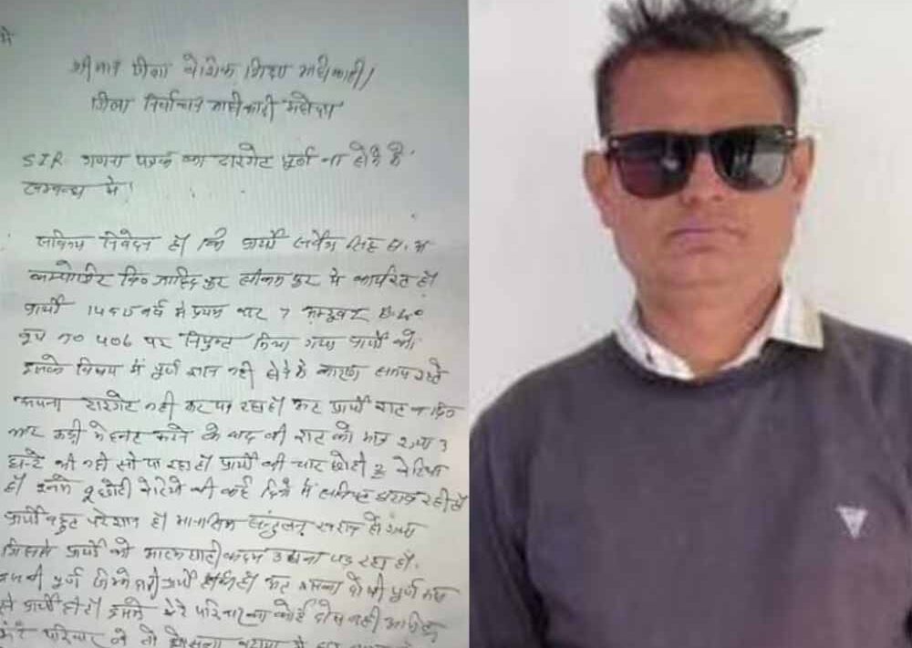 लिखा कि मानसिक दबाव इतना ज्यादा है कि आत्मघाती कदम उठाने जा रहा हूं। अगर समय ज्यादा होता तो टार्गेट पूरा कर लेता। अपनी चार बेटियों को लेकर ऐसी बातें लिखीं जिसे पढ़कर कोई भी रो देगा। पिछले पांच दिनों में यूपी में तीसरे बीएलओ ने जान दी है। इससे पहले फतेहपुर में अपनी शादी से एक दिन पहले लेखपाल रामलाल कोरी ने जान दी। फिर गोंडा में सहायक अध्यापक विपिन यादव ने जहर खाकर मौत को गले लगाया था।