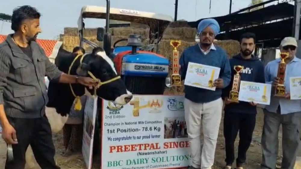 इस मौके पर नवांशहर के बैंस डेयरी फार्म के प्रीतपाल सिंह की HF गाय ने 78 किलो 600 ग्राम दूध देकर पहला स्थान प्राप्त किया. इसके अलावा दूसरा स्थान भी इसी डेयरी की गाय ने 69.500 ग्राम देकर हासिल किया और एक ट्रैक्टर जीता. यह पहली बार नहीं है. इससे पहले भी इस गाय ने कई बार पहला और दूसरा स्थान प्राप्त किया है. इस मौके पर प्रीतपाल सिंह के पिता चमन सिंह ने कहा कि 1 दिसंबर को राजस्थान के हनुमानगढ़ में पशु मिलकिंग मेला का आयोजन किया गया, जो 3 दिसंबर को खत्म हुआ. इस मेले में सिर्फ दूध चुवाई का कार्यक्रम था. HF गाय, जिसने पहला स्थान प्राप्त किया है और ट्रैक्टर जीता था.
