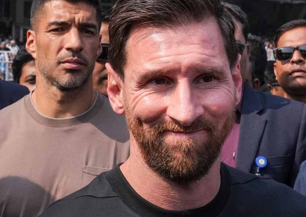 अर्जेंटीना के महान फुटबॉलर लियोनेल मेसी ‘जीओएटी भारत दौरा 2025’ की कोलकाता में खराब शुरूआत के बाद दूसरे चरण के लिये शनिवार की शाम को पहुंच गए। निजामों के शहर में उनके कार्यक्रम की शुरूआत शाम सात बजकर 50 मिनट पर एक नुमाइशी मैच से होगी । तेलंगाना के मुख्यमंत्री ए रेवंत रेड्डी और लोकसभा में विपक्ष के नेता राहुल गांधी मैदान पर उतरेंगे, जिनके बाद मेस्सी और इंटर मियामी के उनके साथ रौड्रिगो डि पॉल और लुई सुआरेज आयेंगे ।