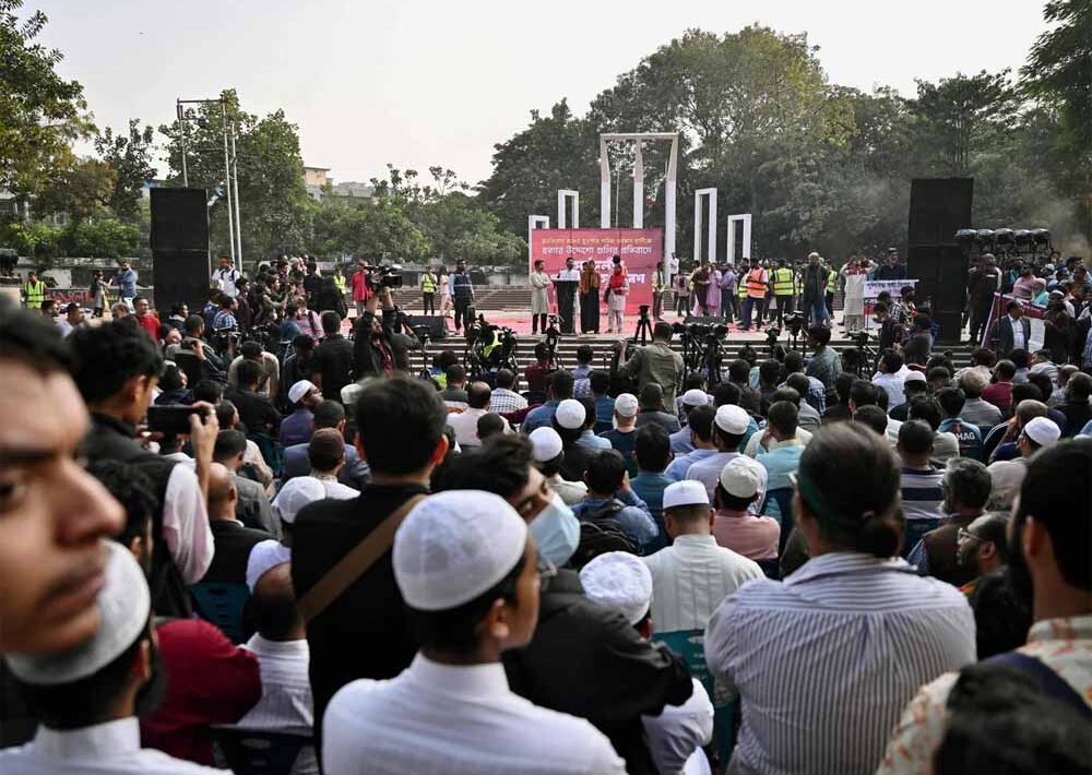 इंकलाब मंच मे फेसबुक पोस्ट के जरिए बताया कि ढाका में शाहबाग इलाके में जोरदार प्रदर्शन किया जाएगा। शुक्रवार से ही यहां बहुत सारे कार्यकर्ता धरने पर बैठे हैं। शनिवार को भी ढाका में कई जगहों पर विरोध प्रदर्शन के चलते जाम लग गया। इंकलाब मंच ने ढाका, सिलहेट, चट्टोग्राम और कुश्तिया में प्रदर्शन किए। शाहबाग में इंकलाब मंच के सदस्य अब्दुल्ला ने कहा कि आज तो हम शाहबाग में हैं लेकिन कल तक जमुना तक कब्जा हो जाएगा। बता दें कि अंतरिम सरकार के मुख्य सलाहकार मोहम्मद यूनुस के आवास का नाम जमुना है।