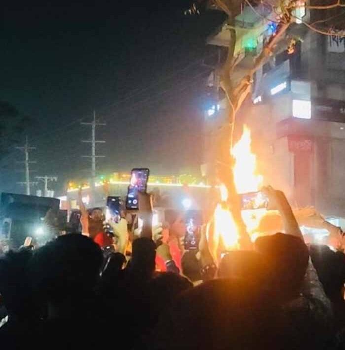 उन्होंने बताया, फैक्ट्री के बाहर खड़ी भीड़ ने दीपू चंद्र दास को अधमार कर दिया। लोग लातों से उनके मुंह और सीने पर मार रहे थे। बहुत सारे लोग डंडों से पीट रहे थे। दीपू दास खून से लथपथ थे। फैक्ट्री के गेट पर ही यह दरिंदगी हो रही थी। दीपू को इतने में भी नहीं छोड़ा गया। दीपू की मौत के बाद उनके शव को एक किलोमीटर घसीटा गया और फिर पेड़ से लटका दिया गया। कुछ लोगों ने पेट्रोल डालकर श को आग लगा दी। अधजला शव ही जमीन पर गिर गया।