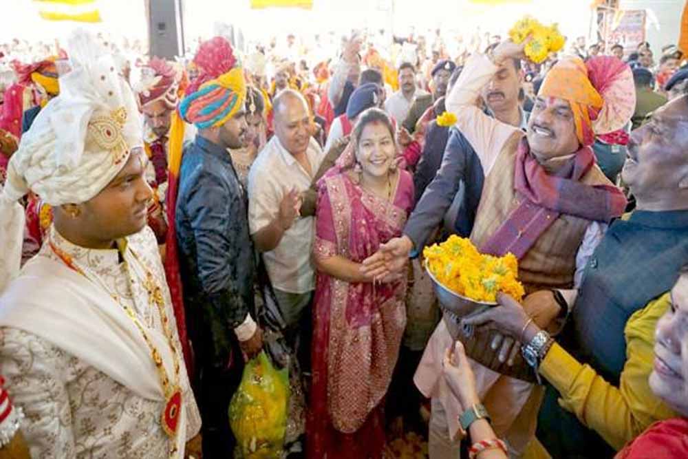मुख्यमंत्री डॉ. यादव ने पुष्प वर्षा कर नव विवाहित जोड़ों को आशीर्वाद प्रदान कर उनके उज्जवल भविष्य की मंगलकामना के साथ ईश्वर से नव विवाहितों को वैभव, यश, कीर्ति, और आनंद प्रदान करने की प्रार्थना की। मुख्यमंत्री डॉ. यादव ने नव विवाहित जोड़ों से माता-पिता की सेवा करने और समाज के कल्याण में योगदान देने का आहवान भी किया। मुख्यमंत्री ने समारोह में नव विवाहित जोड़ों का पुष्प वर्षा कर स्वागत किया।