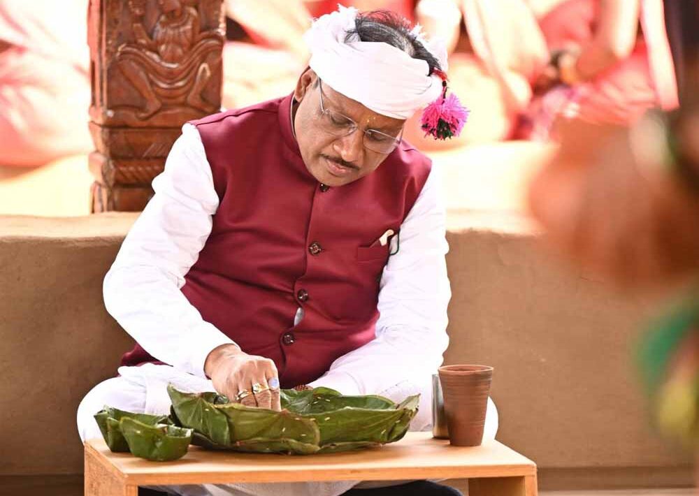 मुख्यमंत्री साय ने घोटुल परिसर के लेय्योर एवं लेयोस्क कुरमा: युवाओं और युवतियों के लिए निर्मित कक्षों के साथ ही बिडार कुरमा: पारंपरिक वेशभूषा, प्राचीन वाद्ययंत्र एवं सांस्कृतिक सामग्रियों का संग्रह का निरीक्षण किया। इस दौरान ग्रामीणों की आग्रह पर मुख्यमंत्री साय ने सगा कुरमा में बस्तर के पारंपरिक व्यंजनों का स्वाद लेकर क्षेत्र की खान-पान संस्कृति का सम्मान किया। इस दौरान मुख्यमंत्री के भोजन में विशेष रूप से भोजन गाटो-भात, कोदो-भात, उड़िद दार, हिरुवा दार, जीरा भाजी, कनकी पेज, भाजी घिरोल फुल, चाटी भाजी, कांदा भाजी, मुनगा भाजी, इमली आमट, मड़िया पेज, टमाटर चटनी, चिला रोटी, रागी कुरमा, रागी केक, रागी लट्टू, रागी जलेबी परोसा गया।