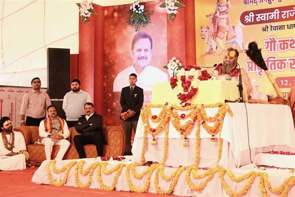 जगदगुरू राजेंद्रदास जी महाराज ने कहा कि वर्तमान समय में समाज की दुर्दशा का मूल कारण गौवंश की उपेक्षा है। उन्होंने कहा कि भौतिक संपत्ति असुरों के पास भी थी, किंतु वह आसुरी संपत्ति थी, दैवीय संपत्ति नहीं। आसुरी संपत्ति मनुष्य को संसार के मोहजाल में फँसाती है, जबकि दैवीय संपत्ति उसे मोक्ष के मार्ग पर अग्रसर करती है। महाराज जी ने गौ सेवा को सच्ची समृद्धि का आधार बताते हुए कहा कि गौ माता की सेवा से बुद्धि निर्मल होती है, जीवन में सुख-शांति आती है और व्यक्ति के समस्त अशुभ कर्म सहज ही क्षीण हो जाते हैं। उन्होंने यह भी कहा कि धरती का कल्याण गौ संरक्षण से ही संभव है तथा गौ आधारित प्राकृतिक खेती ही आने वाले समय का सतत और सात्विक समाधान है। गौमाता धरती का चलता फिरता कल्पवृक्ष है जो सबकी कामनाओं की पूर्ति करती हैं।