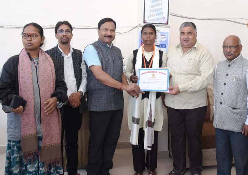 पर्यटन मंत्री राजेश अग्रवाल ने हैमर थ्रो में राज्य स्तर पर तृतीय स्थान प्राप्त करने वाली छात्रा सुधा सिंह को किया सम्मानित