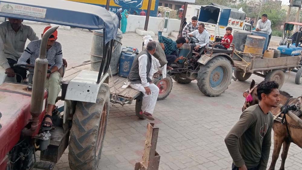 पेट्रोल पंपों पर पहुंचे किसानों का कहना है कि युद्ध की खबरों के कारण तेल की कीमतें बढ़ने और कमी होने की चर्चा चल रही है। इसी वजह से वे एहतियात के तौर पर डीजल स्टोर कर रहे हैं।