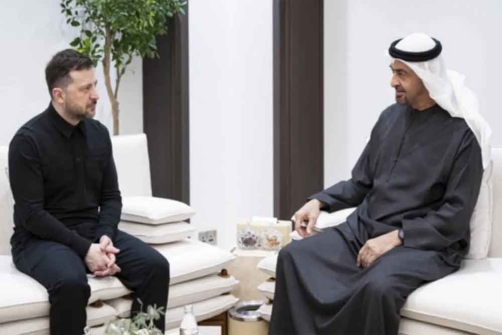 यूएई के राष्ट्रपति मोहम्मद बिन जायद अल नाहयान के साथ मुलाकात के दौरान ज़ेलेंस्की ने ईरान की ओर से किए जाने वाले हमलों और वैश्विक तेल आपूर्ति के लिए जीवन रेखा माने जाने वाले होर्मुज जलडमरूमध्य की संभावित नाकाबंदी पर लंबी बात की। ज़ेलेंस्की ने सोशल मीडिया प्लेटफॉर्म X पर जानकारी दी कि यूक्रेन के पास रूसी हमलों का मुकाबला करने का व्यापक अनुभव है और वे अपनी एयर डिफेंस विशेषज्ञता यूएई के साथ साझा करने को तैयार हैं। उन्होंने जोर देकर कहा कि यूक्रेन ने एक ऐसी प्रणाली विकसित की है जो दुश्मन के हमलों को रोकने में अत्यधिक प्रभावी साबित हुई है। उनका मानना है कि तेल बाजारों की स्थिरता और निर्दोष लोगों की जान बचाने के लिए यह सहयोग आज के समय की सबसे बड़ी जरूरत है।