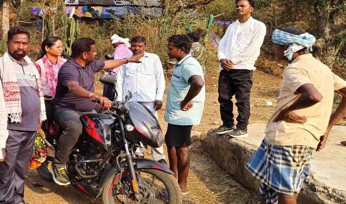 जंगल-झाड़ी में मोटरसाइकिल चलाते विधायक दशरथ गागराई