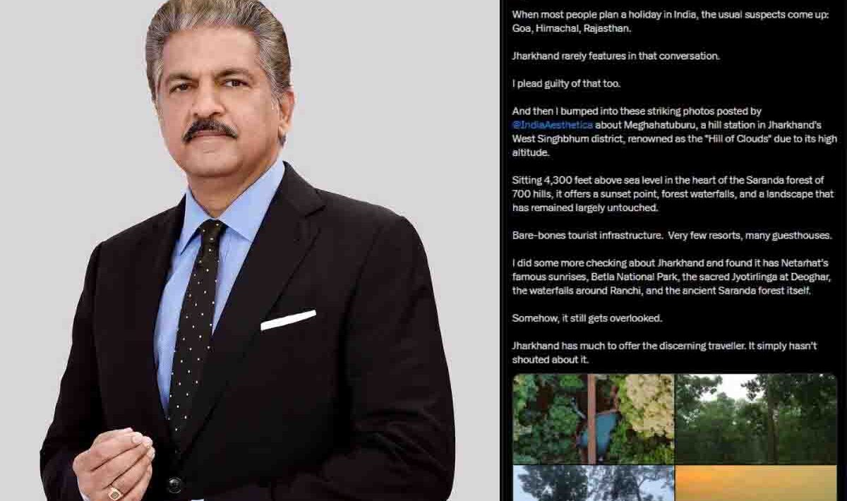 उन्होंने अपने पोस्ट में यह भी कहा कि झारखंड में पर्यटन सुविधाएं बहुत सीमित हैं – बहुत कम रिसॉर्ट और ज्यादातर गेस्टहाउस है. आनंद महिंद्रा ने झारखंड के बारे में और जानकारी जुटाई तो पता चला कि यहां नेतरहाट के प्रसिद्ध सूर्योदय, बेतला राष्ट्रीय उद्यान, देवघर का पवित्र ज्योतिर्लिंग, रांची के आसपास के जलप्रपात और प्राचीन सारंडा जंगल मौजूद हैं. फिर भी यह जगह अक्सर नजरअंदाज हो जाती है. झारखंड में समझदार यात्रियों के लिए बहुत कुछ है. बस अब तक इसका खुलकर प्रचार नहीं किया है.