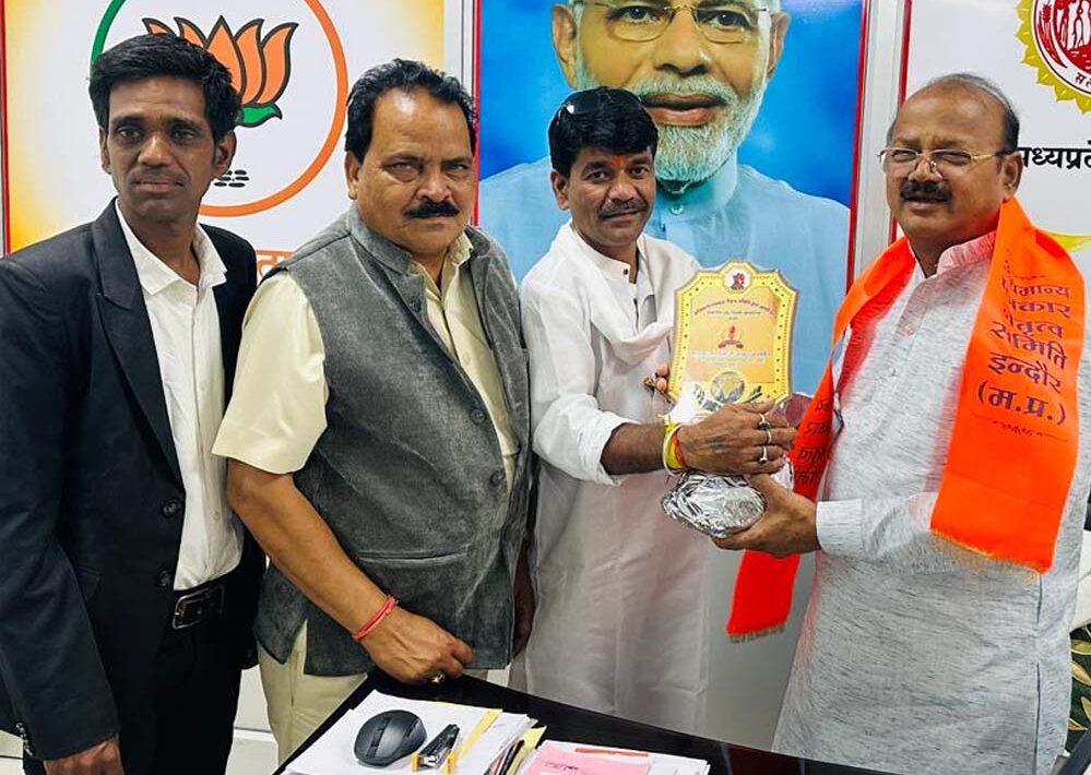 मध्य प्रदेश शासन के मंत्री भाई दिलीप जायसवाल से मुलाकात कर,समिति अध्यक्ष अधिमान्य पत्रकार नेतृत्व समिति डल्लू कुमार सोनी एवं मध्य प्रदेश समिति अध्यक्ष प्रीतम कुमार वर्मन,छत्तीसगढ़ प्रदेश महासचिव धर्मेंद्र वस्त्रकर संयुक्त मुलाकात कर वार्तालाप कर स्मृति चिन्ह देकर देकर सम्मान करते हुए।