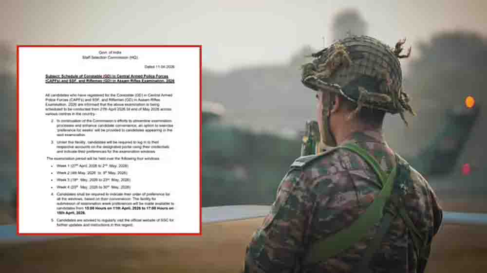 एसएससी जीडी की परीक्षा तिथि का इंतजार कर रहे उम्मीदवारों के लिए बड़ा अपडेट है। स्टाफ सेलेक्शन कमीशन ने जीडी कॉन्स्टेबल भर्ती की परीक्षा तिथि की घोषणा कर दी है। 27 अप्रैल से शुरू होकर यह परीक्षा मई के आखिरी हफ्ते तक चार चरणों में आयोजित की जाएगी। एसएससी की आधिकारिक वेबसाइट ssc.gov.in पर जारी हुए ऑफिशियल नोटिस के मुताबिक पहले हफ्ते 27 अप्रैल से 2 मई 2026 तक पेपर लिया जाएगा। इसके बाद 4 मई से 9 मई तक दूसरे हफ्ते की परीक्षा होगी। इसी तरह आगे का शेड्यूल भी तय किया गया है।