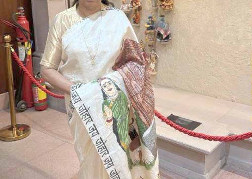 शपथ ग्रहण समारोह के दौरान सांसद लक्ष्मी वर्मा ने एक विशेष रूप से डिज़ाइन की गई साड़ी धारण की थी, जिसने संसद भवन में सभी का ध्यान आकर्षित किया। यह परिधान पूर्णतः छत्तीसगढ़ की कला, संस्कृति और धरोहर का प्रतिनिधित्व कर रहा था। साड़ी के मुख्य भाग पर प्रदेश के ऐतिहासिक और पुरातात्विक गौरव ‘भोरमदेव मंदिर’ की सुंदर आकृति और प्रदेशवासियों की अगाध आस्था की प्रतीक ‘छत्तीसगढ़ महतारी’ का भव्य चित्र उकेरा गया था। इसके अतिरिक्त साड़ी की किनारी (बॉर्डर/लेयर) पर पारंपरिक छत्तीसगढ़ी अभिवादन ‘जय जोहार’ स्पष्ट अक्षरों में लिखा हुआ था, जो प्रदेश की सादगी, आत्मीयता और भाईचारे का सशक्त संदेश दे रहा था।