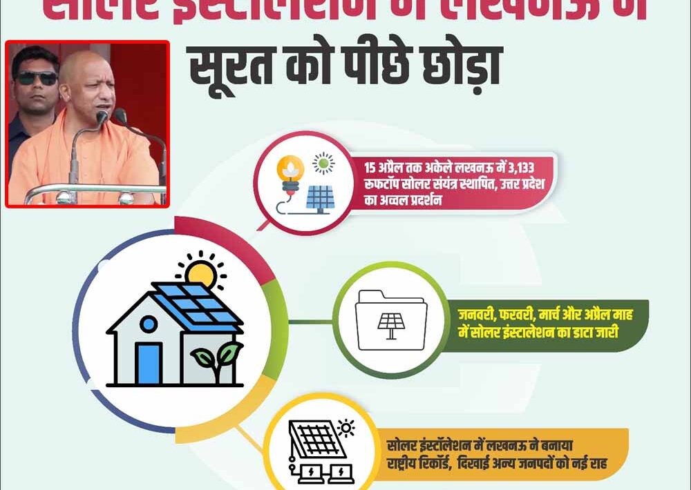 उत्तर प्रदेश की राजधानी लखनऊ ने सौर ऊर्जा के क्षेत्र में एक बड़ी उपलब्धि हासिल करते हुए देशभर में सोलर इंस्टॉलेशन के मामले में शीर्ष स्थान प्राप्त कर लिया है। मुख्यमंत्री योगी आदित्यनाथ के नेतृत्व में राज्य में चल रहे रुफटॉप सौर ऊर्जा के क्षेत्र में पीएम सूर्य घर मुफ्त बिजली योजना के अंतर्गत अभियान ने लखनऊ को राष्ट्रीय स्तर पर अग्रणी बना दिया है।