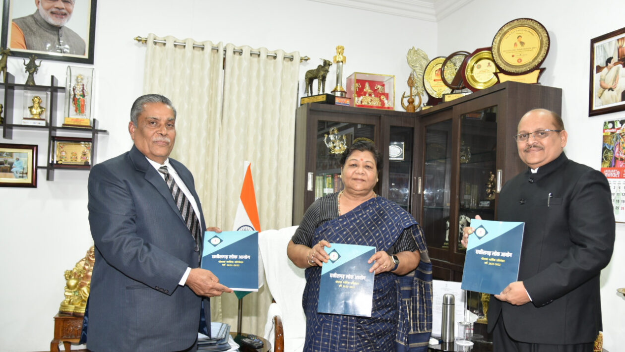 राज्यपाल सुश्री अनुसुईया उइके से आज राजभवन में छत्तीसगढ़ लोक आयोग के प्रमुख लोकायुक्त जस्टिस (से.नि.) टी.पी. शर्मा ने मुलाकात की। उन्होंने राज्यपाल के समक्ष आयोग का 20 वां वार्षिक प्रतिवेदन (वर्ष 2021-22) प्रस्तुत किया और आयोग की गतिविधियों की जानकारी दी।