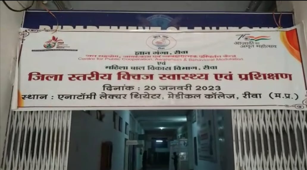 महिला बाल विकास विभाग के सहयोग से आज स्थानीय मेडिकल कॉलेज में जिला स्तरीय स्वास्थ्य क्विज का आयोजन "अमृत मित्र" बच्चों के लिए किया गया। इस कार्यक्रम में 22 स्कूल के बच्चों ने भागीदारी निभाई । कार्यक्रम में सर्वप्रथम जिला स्तरीय स्क्रीनिंग का कार्यक्रम रखा गया जिसमें तीन विद्यालयों की टीम का सिलेक्शन जिला स्तरीय प्रतियोगिता में भाग लेने के लिए किया गया । सभी छात्र छात्राओं को स्वास्थ्य संबंधी प्रशिक्षण दिया गया जिसमें दृष्टि दोष एनीमिया स्क्रीन एडिक्शन और डिप्रेशन की पहचान के विषय में विशेष रूप से जानकारी दी गई।