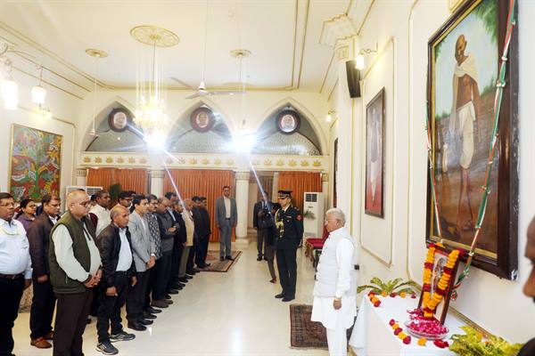 राज्यपाल मंगुभाई पटेल के साथ राष्ट्रपिता महात्मा गांधी की पुण्य-तिथि, शहीद दिवस पर राजभवन के अधिकारी-कर्मचारियों ने 2 मिनट का मौन धारण किया। राष्ट्रपिता महात्मा गांधी के चित्र पर पुष्पांजलि अर्पित की। देश को आज़ादी दिलाने, अपने प्राणों की आहूति देने वाले असंख्य ज्ञात-अज्ञात शहीदों, स्वतंत्रता संग्राम सेनानियों को श्रद्धांजलि दी।