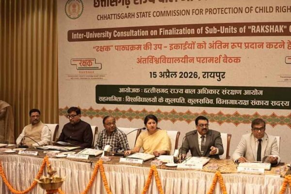 Chhattisgarh, State हर छात्र बनेगा बच्चों के अधिकारों का प्रहरी – डॉ. वर्णिका शर्मा Posted onApril 15, 2026 रायपुर. छत्तीसगढ़ राज्य बाल अधिकार संरक्षण आयोग, रायपुर द्वारा “रक्षक (RAKSHAK) पाठ्यक्रम” को राज्य में प्रभावी रूप से लागू करने की दिशा में सतत प्रयास …