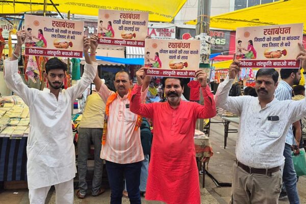 Madhya Pradesh, State भोपाल संस्कृति बचाओ मंच की अपील: राखी केवल सनातनी भाइयों को बांधें Posted onAugust 8, 2025 भोपाल राजधानी भोपाल में संस्कृति बचाओ मंच रक्षाबंधन से पहले शुक्रवार को अभियान चलाकर राखी की दुकानों पर पहुंचने वाली महिलाओं और युवतियों से अपील …